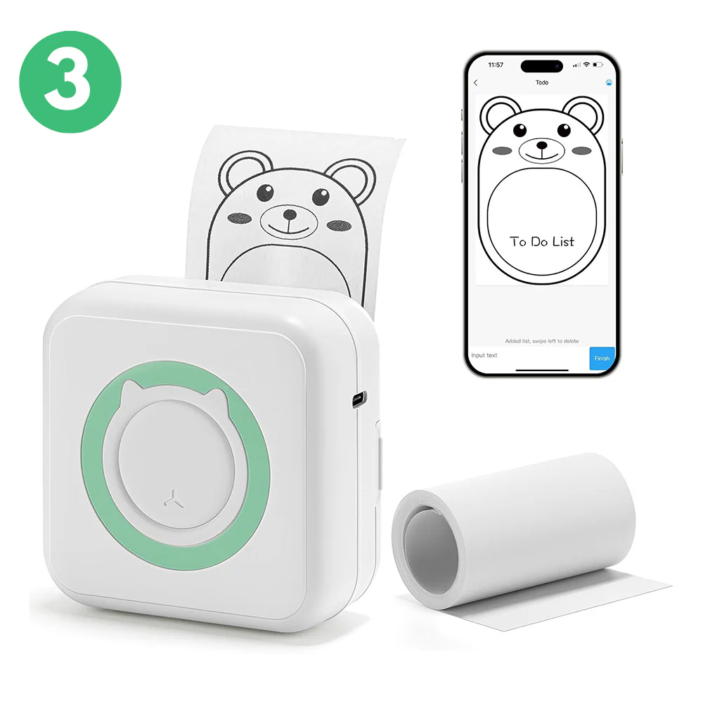 Our inkless printer ensures you'll never have to worry about messy ink cartridges or pricey refills again. It utilizes innovative technology to deliver crisp, clear prints every time. And the best part? Each printout comes with an adhesive backing, transforming your notes, sketches, and reminders into stickers that you can put just about anywhere.